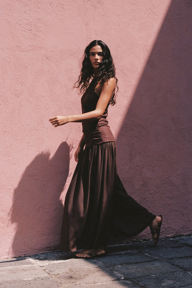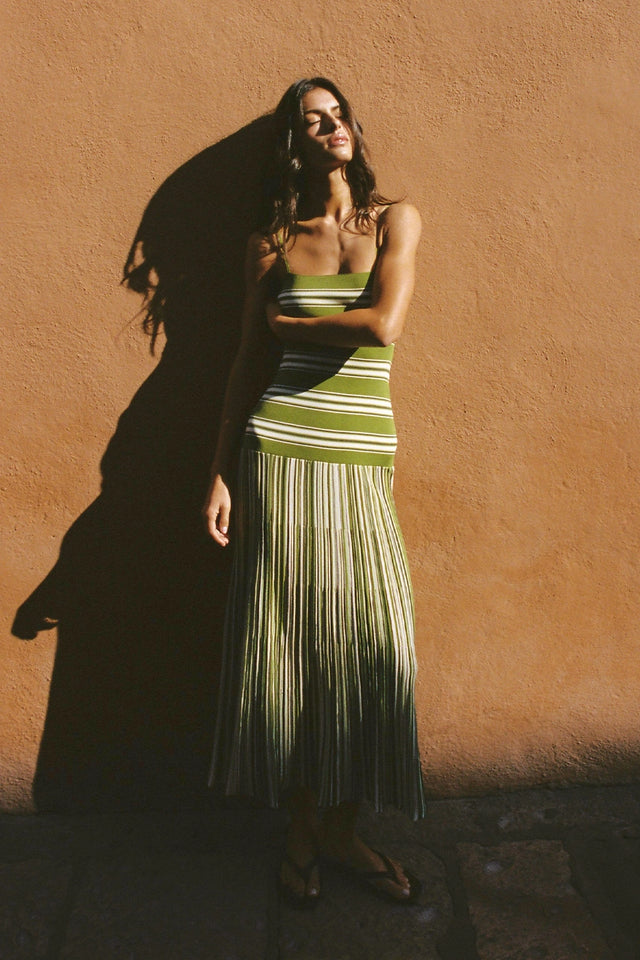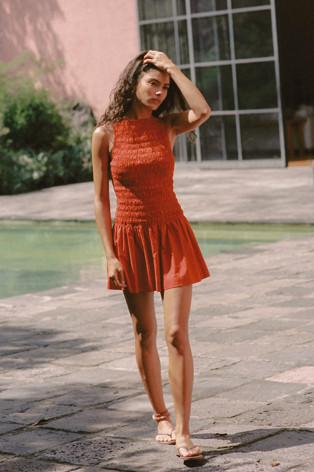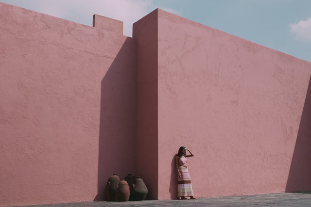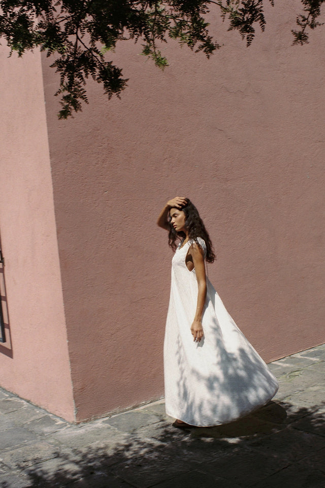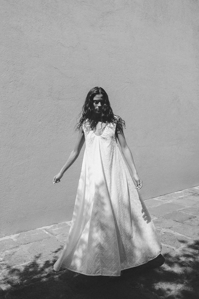 Inspired by the modernist architecture of Luis Barragán and his exploration of colour and texture against the natural elements, the collection embraces an earthy palette of warm neutrals and sun-drenched hues, pared back with natural fibres and effortless silhouettes. Artisanal detailing is woven throughout with resin beading, cotton embroidery and lace appliques.